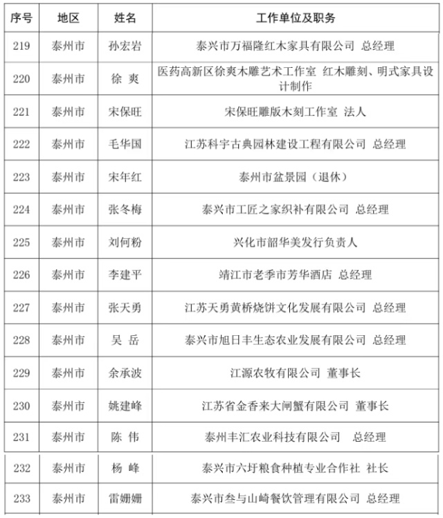 江苏省第三批乡土人才“三带”名人拟入选人员名单(泰州)