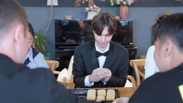 活动现场,大家围坐在一起,揉面、包馅、压模,月饼制作的每一步对于外国友人来说,都充满新鲜感。虽然起初动作略显生疏,有的把面团揉得大小不一,有的包馅时不小心露了“馅”,但在烘焙师傅的指导下,大家逐渐掌握了搓、揉、包、压的技巧。很快,一个个精美饱满的月饼成型,送入烤箱后,空气中满是香甜的气息。