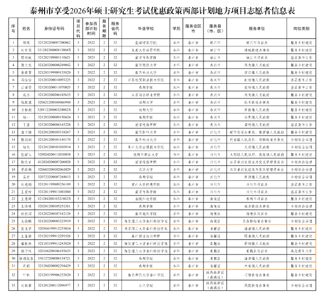 关于对泰州市拟享受2026年硕士研究生考试优惠政策西部计划志愿者的公示