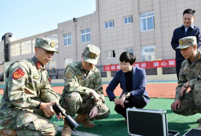 在训练场内,孙靓靓视察我区参加全市大练兵比武民兵分队,实地观摩无人侦察打击、枪发抓捕网、步枪分解结合、刺杀操、野战饮食保障等民兵训练科目演示,详细了解参训民兵的生活、训练等情况,研究民兵训练基地、训练设施升级改造等相关事宜,对民兵队伍良好的精神风貌和严明的组织纪律表示肯定。