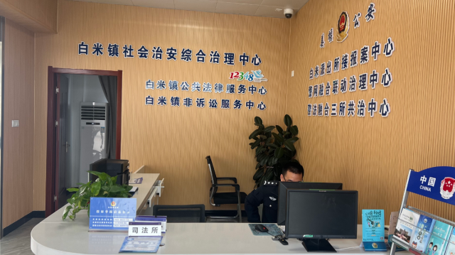 “选址必须方便群众,功能布局要让老百姓一目了然。”白米镇综治中心以标准化建设布局,划分信访接待区、综合协调区、多元化解区、指挥调度区、法律服务区、心理咨询室等功能区域,实现“多中心合一”,推动综治、司法、信访、派出所等部门常驻,村建、教育、卫生、妇联、退役军人等部门轮驻,实现力量整合、信息共享、联勤联动。