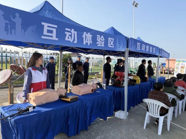 此外,互动体验区也精彩纷呈。在知识转盘前,大家在趣味答题中巩固安全知识;在“应急小能手”体验区里,工作人员模拟地震、火灾等场景,演示正确的应对流程;消防器材展示区与咨询台则由专业人员值守,为群众讲解灭火器使用方法、解答居家安全疑问,实现“疑问当场解、技能亲手学”。