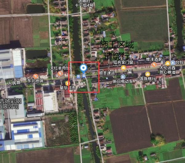 泰州市姜堰区X307(大张线)与西圩路交叉口东南方向90米红旗桥封闭施工