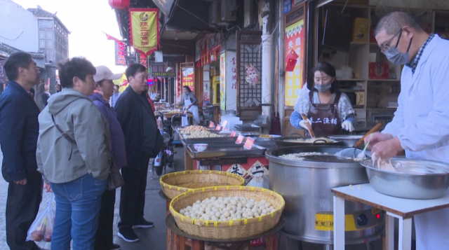 游客李凌珍手里拎了不少土特产:“泰州队苏超得冠了,溱潼这边活动蛮多的,我们过来玩一玩、看一看。”朱二鱼铺店主朱庆丰正在炸鱼圆:“我在这边做了有一二十年了,材料都是新鲜的。这次泰州队苏超夺冠,我们这儿游客也比平时多了一些。”