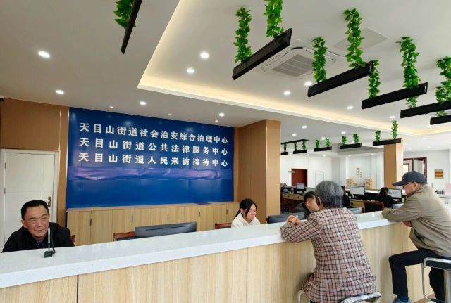2025年8月,天目山街道利用280平方米空间打造践行新时代“枫桥经验”的“一站式”综治中心,通过改造原有场所实现资源聚合,将法律服务、专业调解与社保、民政等窗口集中配置,真正让群众“进一扇门,办所有事”,矛盾调解、法律咨询、政务服务实现“一门通办”。
