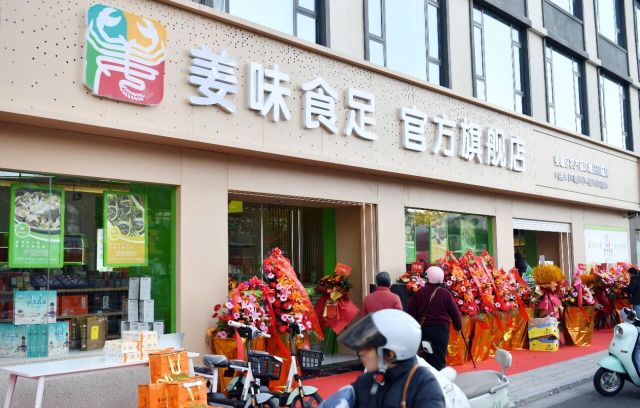 近日,泰州市姜堰区农产品区域公用品牌首家线下门店——“姜味食足”官方旗舰店正式开业,实现了从“云端”到“身边”的温暖抵达。这家由姜堰区农水公司打造的旗舰店位于姜堰大道388号,占地面积约300平方米,将溱湖簖蟹、姜堰大米、姜堰薄脆、大伦羊肉等本地风物集中呈现,为市民提供了一个“一站式”采购优质农产品的新去处。