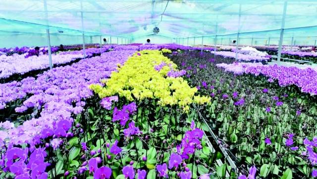 作为主打蝴蝶兰培育的基地,这里汇集100多个细分品种,种植面积足足有1万平方米,品类丰富,规模十足。眼下已至年末,花卉市场销售旺季即将到来,基地早已提前备足30万株蝴蝶兰,目前大部分都进入含苞待放的关键期,长势喜人。