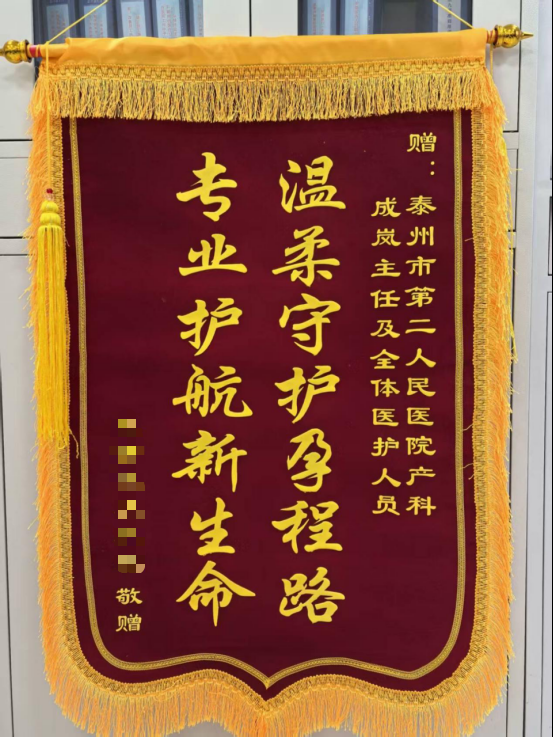 这面由产妇及家属敬赠的锦旗,“温柔守护孕程路,专业护航新生命”14个字,道尽了泰州二院产科的服务底色:科室聚焦孕产妇全周期需求,从孕前评估、孕期个性化管理,到剖宫产围手术期精细化操作、术后康复指导,构建“一站式”母婴保障体系;同时推行“一对一”夜间特护、心理疏导等暖心举措,让产妇在医院也能感受到“家人般的关怀”。