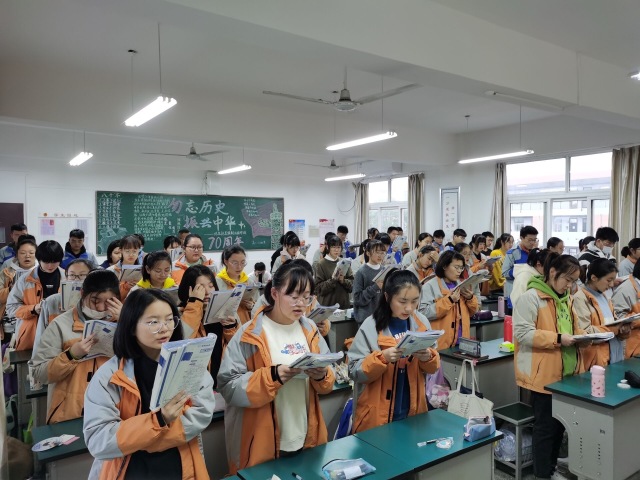 “早读课是语文、英语等语言文学学科学习的一个重要阵地,也是决定学生语文、英语等学科成绩好坏的关键环节,高效的早读能提高记忆效率,巩固学习效果。”姜堰区罗塘高级中学副校长柳勇告说,“学校要求双语教师明确早读任务,科代表前一天放晚学时,将次日早读任务写在黑板上。早读课上,学生可采取带读、集体读、自由读等形式开展有效早读,养成自觉读书的好习惯,努力培养语感和口语表达能力。”