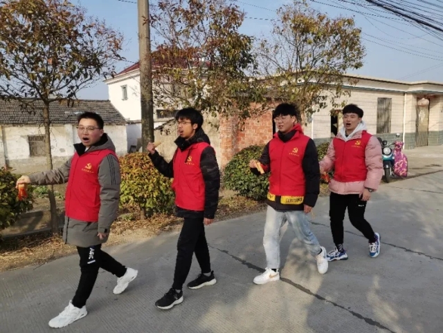 “病毒传播要严防,室内通风人舒畅。勤洗手,勤消毒,自我防护有保障。”在张甸镇朱顾村,几名返乡大学生化身为文明实践志愿者,打起快板,走街串巷,宣传疫情防控的相关知识,做到“疫情防控”和“辞旧迎新”两不误。