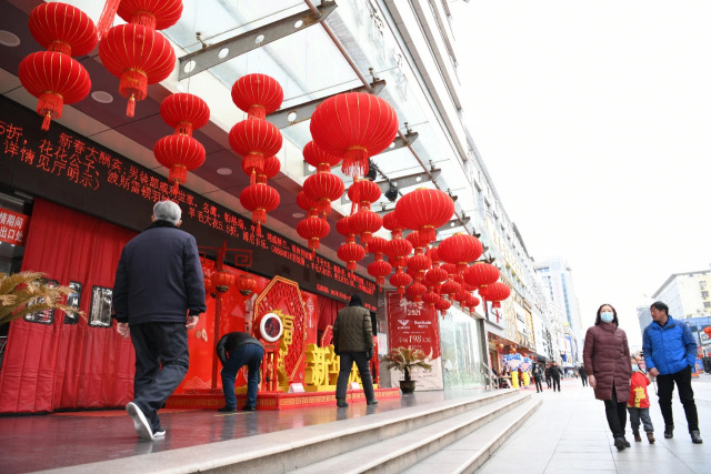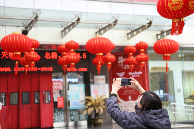 姜堰步行街一家金店店长刘丽说:“我们每年都会在新年挂上红灯笼,预示着我们新的一年更加红红火火,也寓意着我们国家更加繁荣昌盛。”