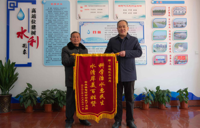 近日,姜堰区白米镇甸河村六组村民丁为国专程来到该区水利局,将一面印有“科学治水惠民生 水清岸美百姓赞”的锦旗送到该局主要负责人手中,代表全村村民对该局实施的老通扬运河东部片区水生态治理工程表示由衷感谢。