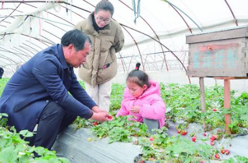 生态草莓园园主、曹家社区党总支书记唐元庆既当“导游”,又忙着指导游客科学采摘草莓,讲述生态草莓生长过程。唐元庆说,2012年,他响应政府号召,发挥党员示范引领作用,流转土地,创办泰州市益禾草莓种植专业合作社,联手省农科院等科研院所,种植宁玉、久红、早玉、红颜等新品草莓,采取垄作栽培,施用鸡粪等有机肥,人工除草、黄板除虫、蜜蜂授粉、自然成熟,长出的草莓色泽鲜艳,果肉饱满多汁,个个如红绿玛瑙。生态园常年用工20多人,人均工资每天70元,成了村民发家致富的“绿色工厂”。