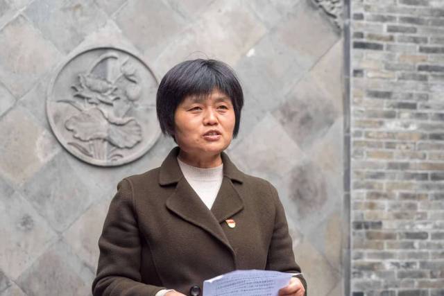 “面对敌军的逼迫,他撕碎文件,沉没枪支,纵身跳下老龙沟,密集的子弹射向河心,林良周胸部多处中弹,他用最后一丝力气喊道:‘怕死就不是共产党员。’”梁徐街道红色梁子军宣讲团成员王霞慷慨动情地宣讲林良周先烈生平。