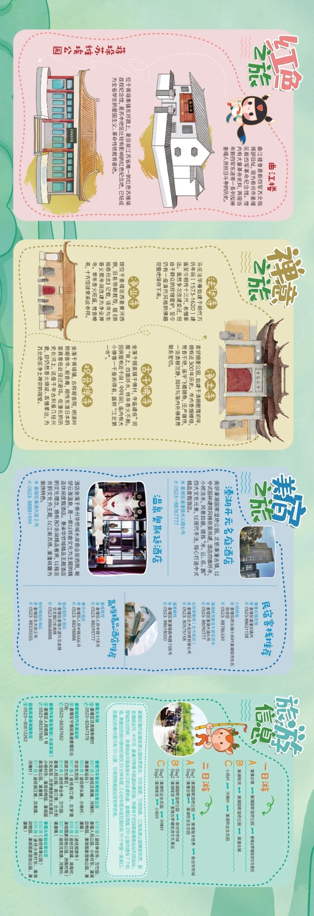 把姜堰描绘成“诗情画意桃花源”,全城要宜游,突出规划“一盘棋”,注重布局“一张网”,围绕“一核一轴两区多点”的旅游空间架构,让环线“动”起来、全域“美”起来;全季要可游,根据季节特点,统筹办好茶花节、会船节、冬捕节等节庆活动,有针对性地开发旅游产品,努力实现高质量的“全季游”;全时要能游,通过植入夜游项目,丰富配套夜娱、夜宴、夜宿等功能,发展“月光经济”、拉动二次消费。