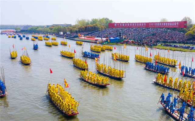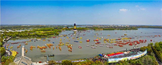 会水会船绘姜堰,养生养福漾溱湖。4月8日,第十五届中国湿地生态旅游节暨2021中国泰州姜堰溱潼会船节盛大开幕。数百条各式各样的船只和上万名会船选手飞篙走桨,弄潮击浪,演绎了一幅具有姜堰特色的民俗画卷。现场数万名来自全国各地的嘉宾、游客共赏这一特色节庆,见证“天下会船数溱潼”的壮观景象。