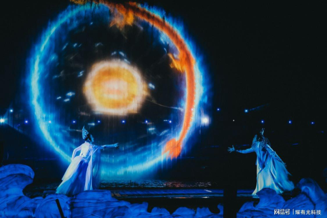 整场光影演艺以“梦”贯穿主线,分为《九龙朝阙》和《琉璃禅韵》两大场景,为观众打造了一个融合了光影、音乐、舞蹈、喷泉、焰火等丰富元素的多维空间。