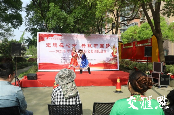 随后,大家一起欣赏《党旗在心中 共筑中国梦》文艺汇演。诗朗诵《昂首跟党走 高歌向未来》、独唱《红梅赞》,还有特色少数民族舞蹈《逛新城》……欢声笑语中,各民族群众其乐融融。