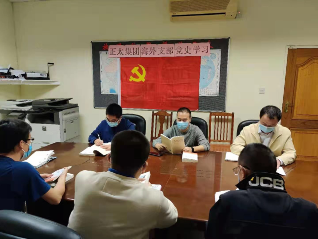 “党史学习教育要在项目建设中起到思想引领作用,让广大参建员工通过学党史、悟思想,焕发出助力建设高质量工程、展示中国建筑水平的新动力。”近日,在博茨瓦纳首都哈博罗内市,正太集团海外党支部书记刘志勇在党员活动记录本上写下了学习党史的感悟心得。正太集团海外党支部共有党员9名,入党积极分子2名,前期,正太集团将 《中国共产党简史》、《论中国共产党历史》等学习书籍不远万里带到博茨瓦纳哈博罗内市“莫舒巴新医院”项目工地,每日项目晨会前,增设“工前一刻钟”党史学习课,党员们学原文,谈心得,把党史教育融入日常、抓在经常,引导党员学党史、知党情、跟党走。