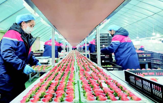 搭建“区域共富联盟”。姜堰区蒋垛镇聚焦草莓产业,按照“区位相邻、资源相近”原则,引导盐大、南港、许庄等7个村党组织组团,与小红叶、深圳鑫荣懋公司合作,将订单农户的小生产与千变万化的大市场有效对接,初步形成产供销一条龙模式,确保村民手中有订单、心里有底气,实现销售2200万元,带动近600名农民就业。“我们目前有红颜、白草莓、章姬等受市场欢迎的品种。”南港村草莓基地负责人查梅芳介绍说,在政府牵线搭桥下,他们与销售公司合作,种植的草莓由销售公司销往深圳、广州等南方城市商超,有效拓宽了销售市场。