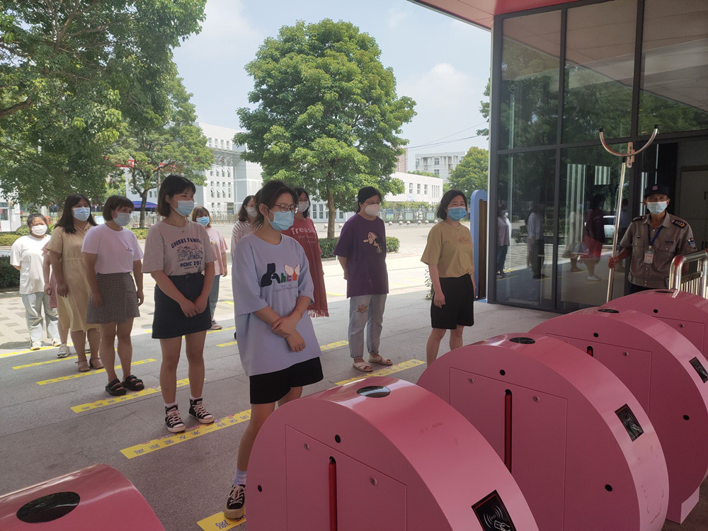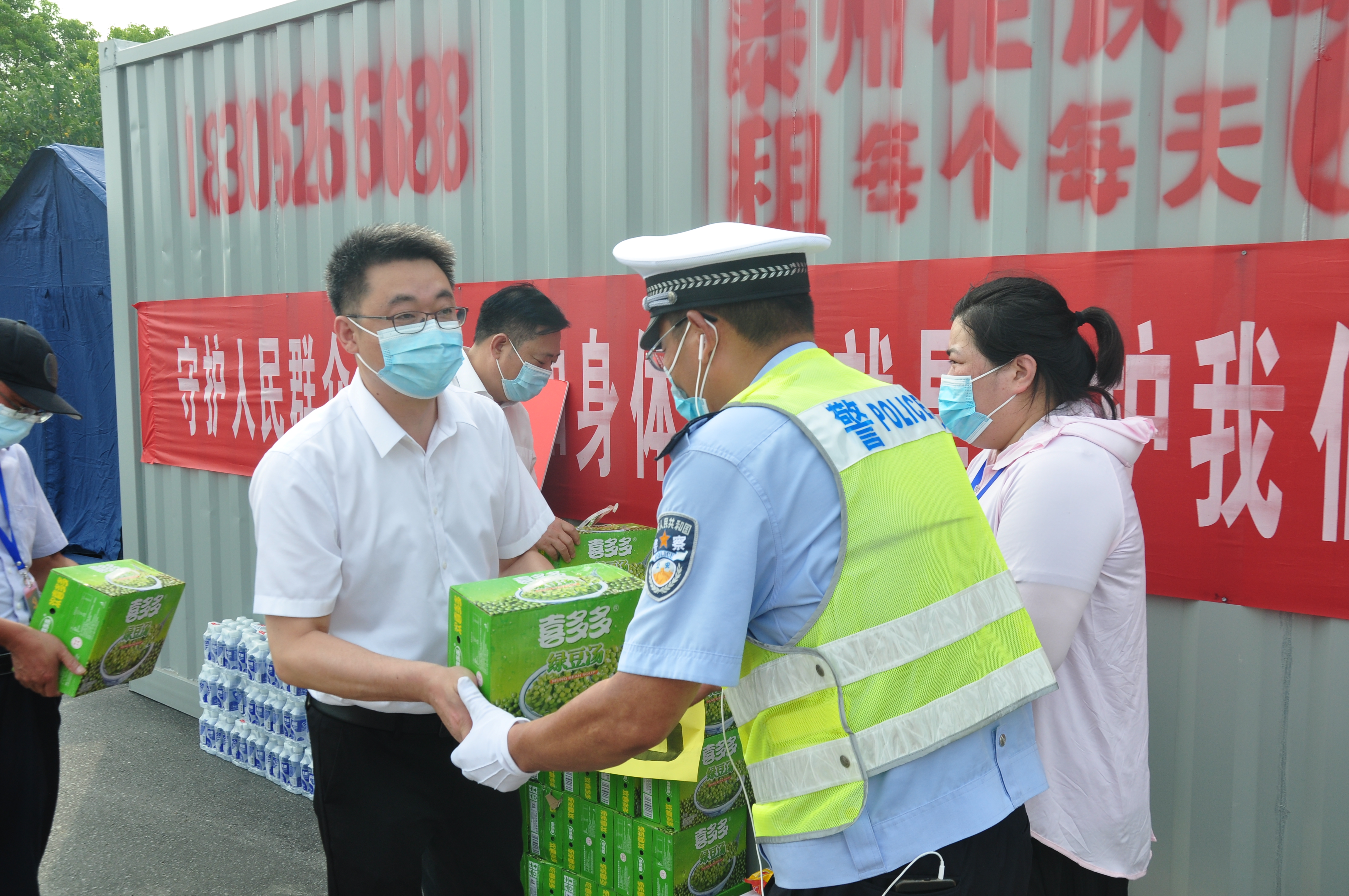 “您好,请保持1米距离,出示健康码,测量体温再进入。”连日来,泰州市姜堰区总工会“党员突击队”和“堰惠客”抗疫志愿队奔赴在社区、园区、高速口、企业、工地等疫情防控一线,冒风雨、迎酷暑,24小时轮班坚守岗位。党员沈长凤刚做过甲状腺结节切除手术,还处于恢复期,但她坚持加入抗疫队伍,值守在