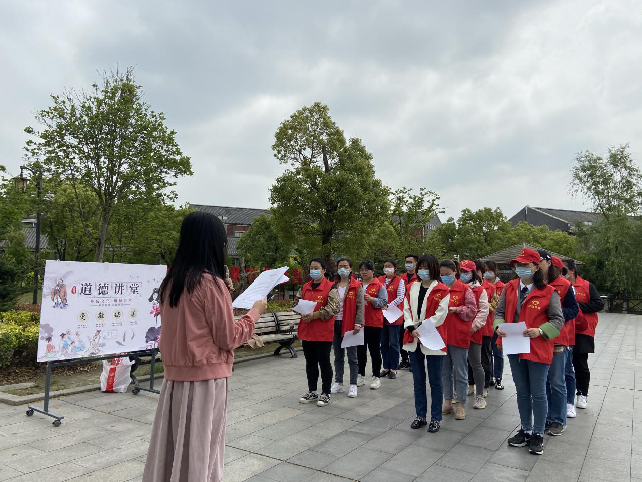 近期,姜堰区罗塘街道举办2021年度第二期道德讲堂,街道青年志愿者在人民公园相约而至,一场专属于他们的道德讲堂“户外实景”课堂在此开讲。此次道德讲堂主题为“学党史·铸初心·开新局”,活动由福田社区青年志愿者代表王奇主持,共包含“作一番省身、唱一首歌曲、看一部短片、诵一段经典、讲一个